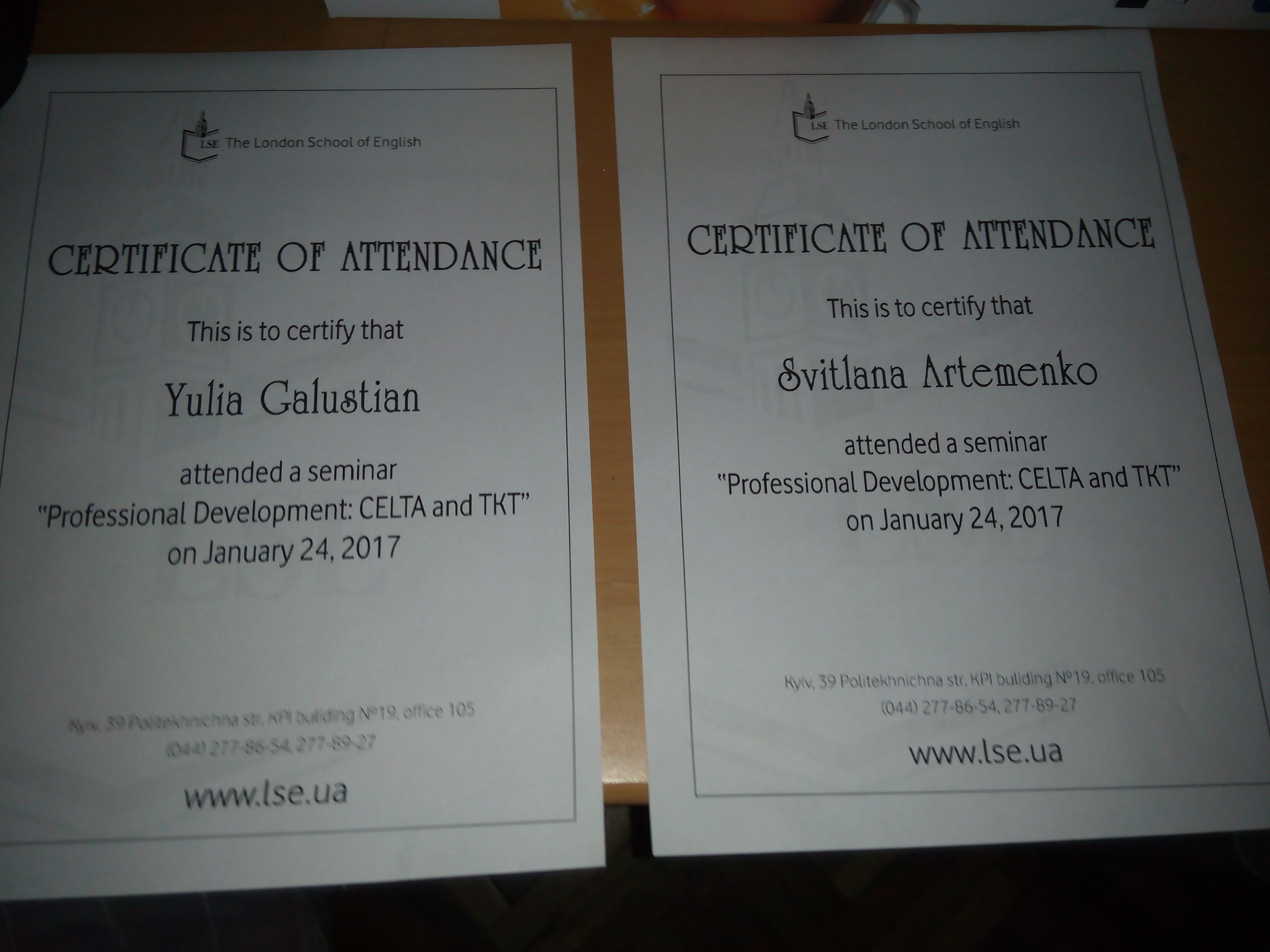 24 січня 2017 року викладачі кафедри соціології: доц. Артеменко С.Б. та доц. Галустян Ю.М. взяли участь в семінарі-презентації "PROFESSIONAL DEVELOPMENT: TKT AND CELTA". Він був організований кафедрою іноземних мов фінансово-економічного факультету спільно з "London School of English". Тренер: Helen Shchur, Cambridge TKT and CELTA Trainer, Academic Director of LSE Kyiv.
