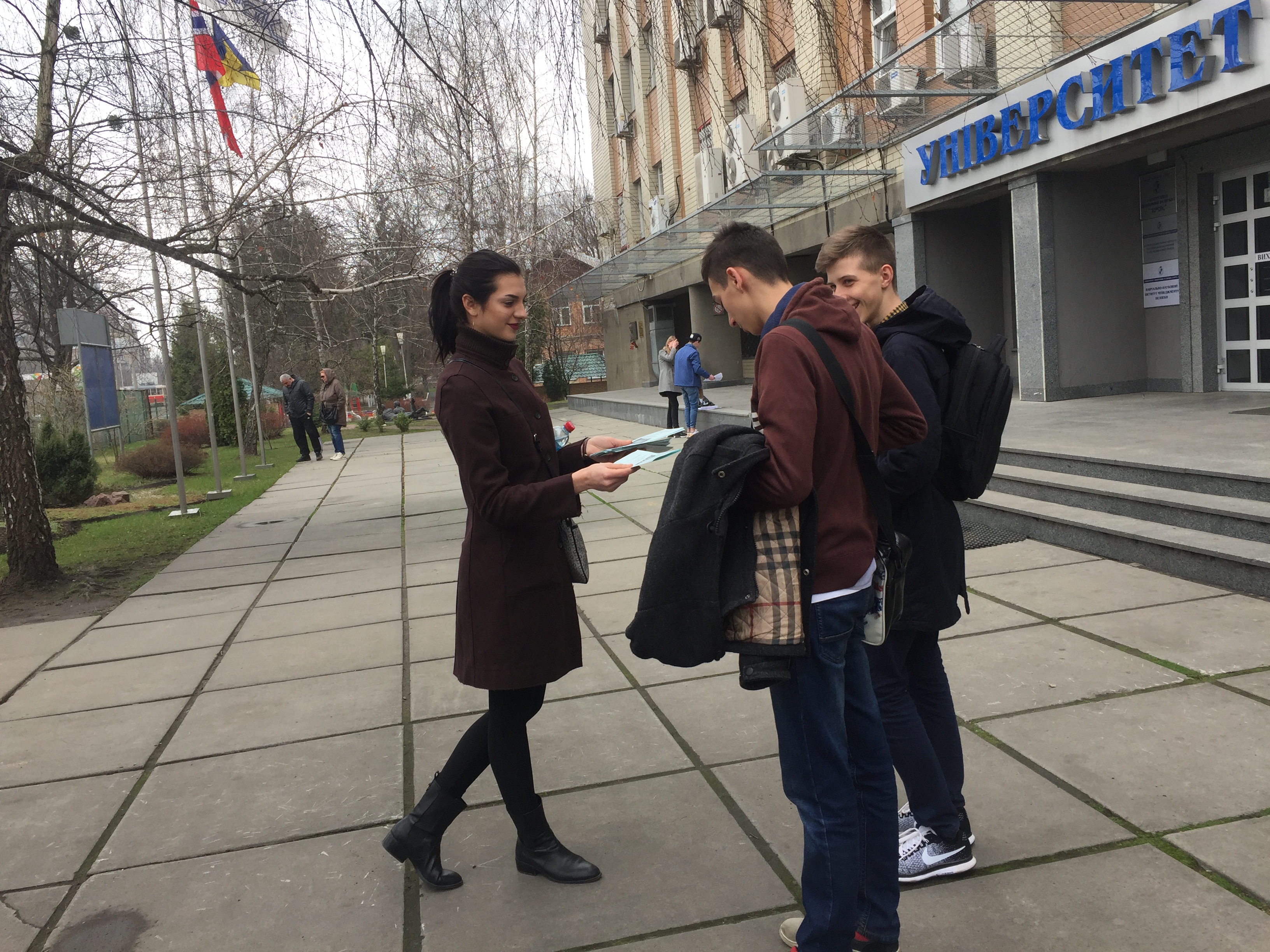 01.04. 17 р. студентки III курсу КНЕУ імені Вадима Гетьмана Батичко Ольга та Орлик Дарина за власної ініціативи (під керівництвом доц. Терещенко Н.В.) провели бесіду з випускниками шкіл м. Києва про популяризацію свого університету та цікаве навчання в ньому, роздали інформаційні листівки та запросили на навчання на соціолога.