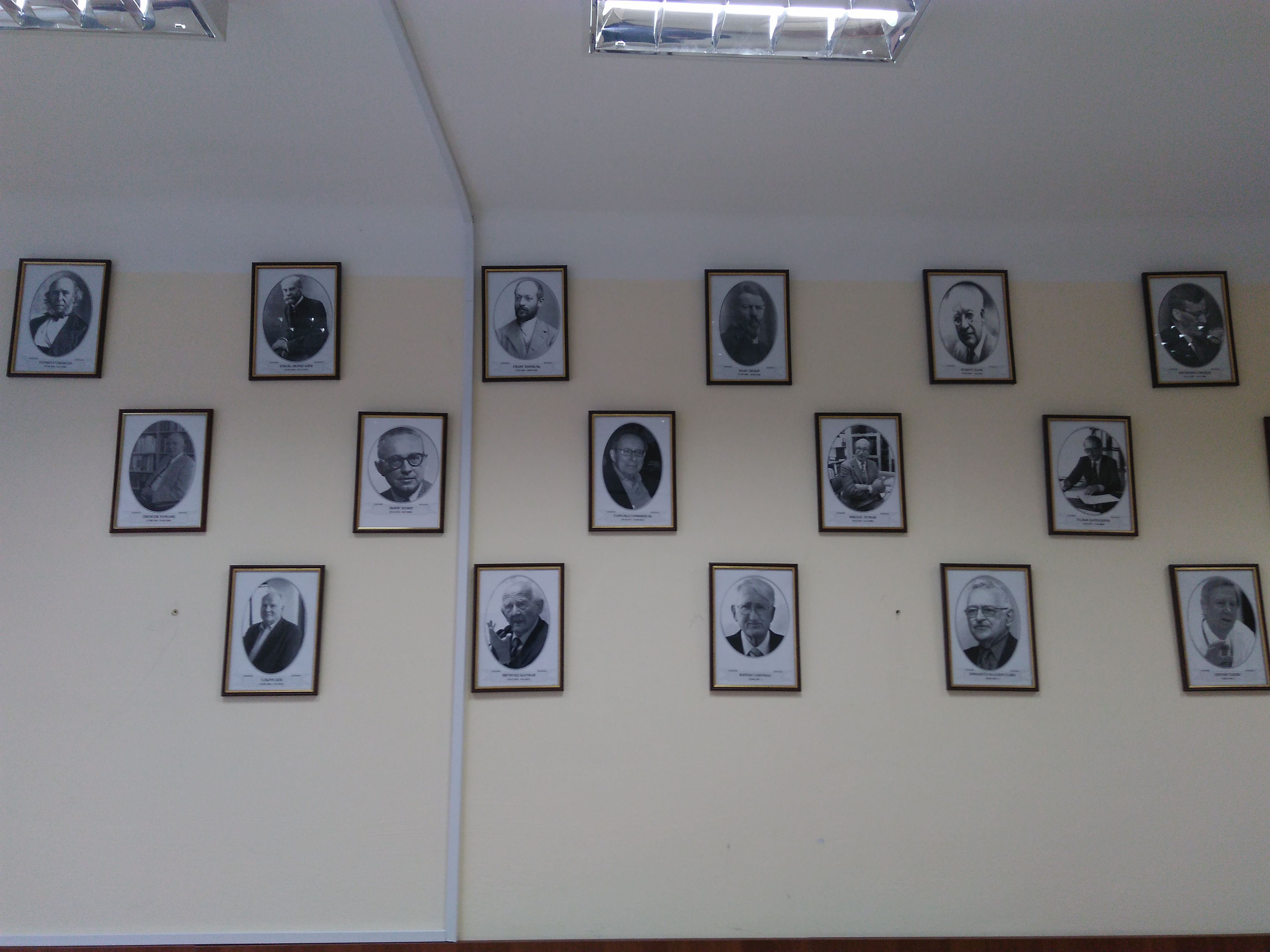 - 27.11.2018 р. співробітниками навчально-наукової соціологічної лабораторії було оформлено аудиторію №335 першого корпусу КНЕУ портретами видатних соціологів. Запрошуємо всіх бажаючих ознайомитись із представниками різних соціологічних шкіл.