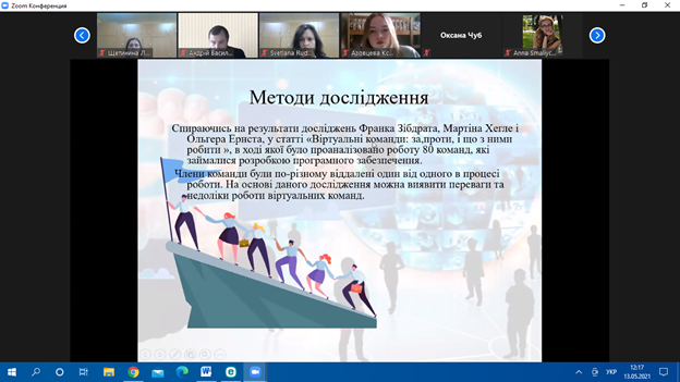Тиждень науки 202117 Травня 2021р.13 травня 2021 р. студенти КНЕУ взяли участь у роботі платформи «Соціально-трудова сфера: досвід та інновації» в рамках 88-ої щорічної студентської наукової конференції «ІННОВАЦІЙНІ ІДЕЇ ТА КРЕАТИВНІ ПРОЄКТИ В ЦИФРОВІЙ ЕКОСИСТЕМІ», яка відбувалася в онлайн режимі. Дослідження студентів-учасників були присвячені питанням Team building і організації командної роботи, самоорганізації та мотивації під час дистанційного навчання, кадрової політики в умовах цифровізації економіки, підвищення залученості персоналу, рекрутингу та ін. За результатами обговорення було визначено переможців: 1 місце поділили Касяненко Ярослав та Ходаківська Анна; 2 місце вибороли Когденко Анастасія, Головко Анна, Лахтадир Марія; на 3 місці посіли Кравченко Вероніка, Коновалова Владислава, Момот Віра, Азовцева Ксенія.
